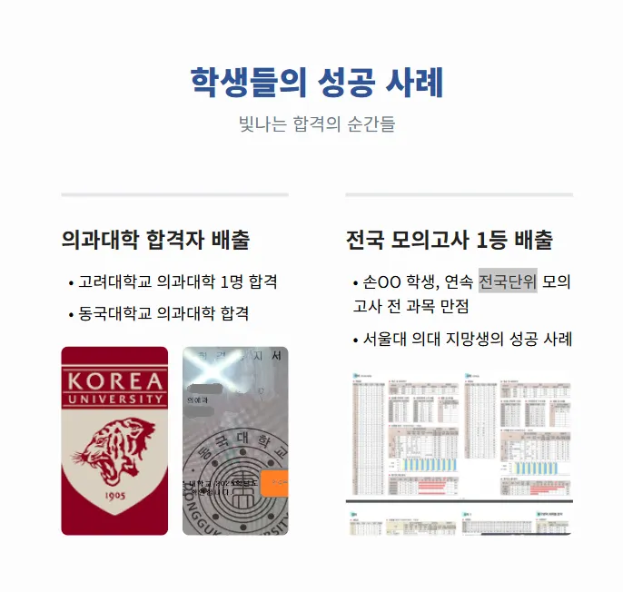 증거 화면은 재수생 후기 페이지에 있습니다.