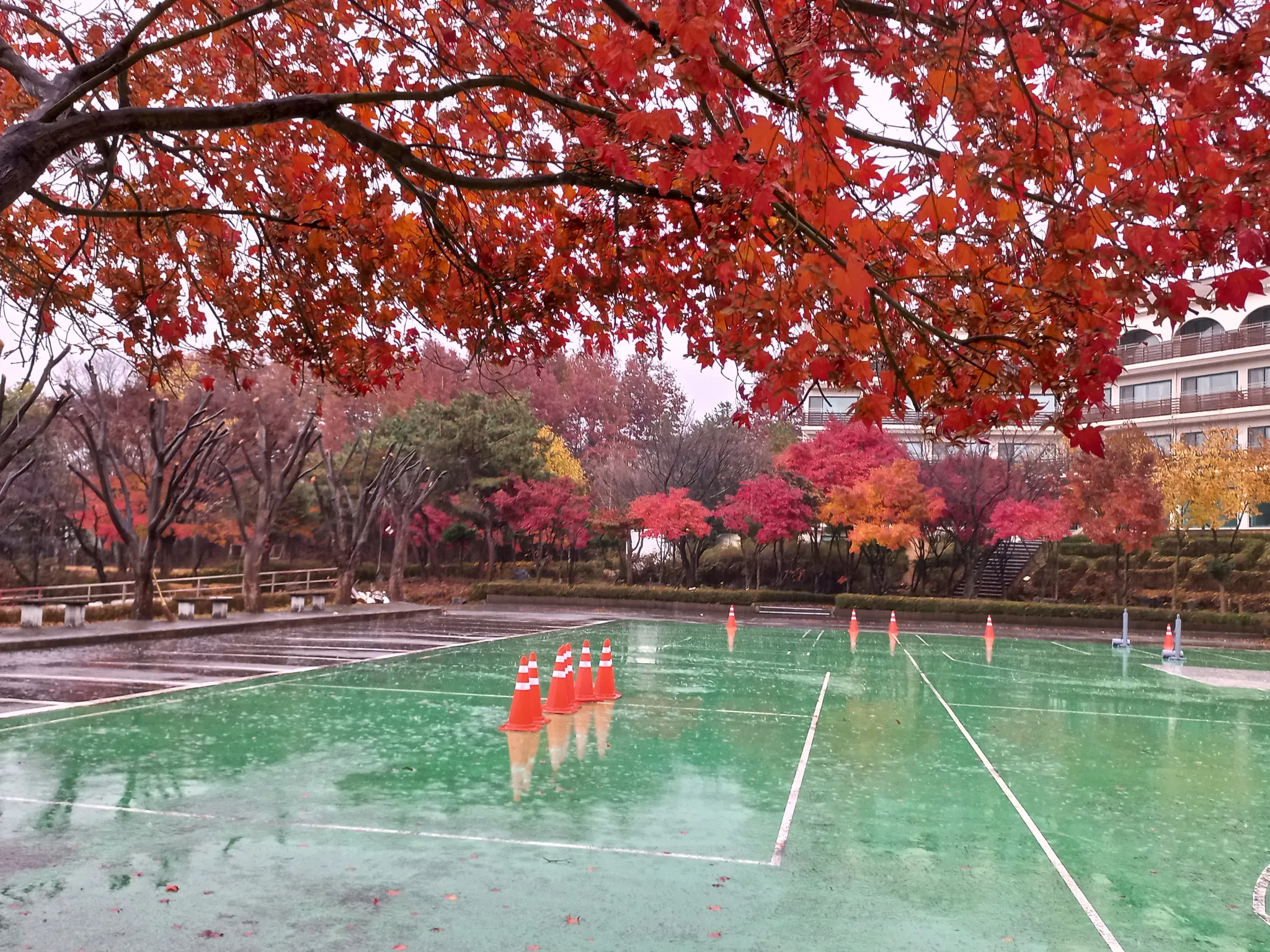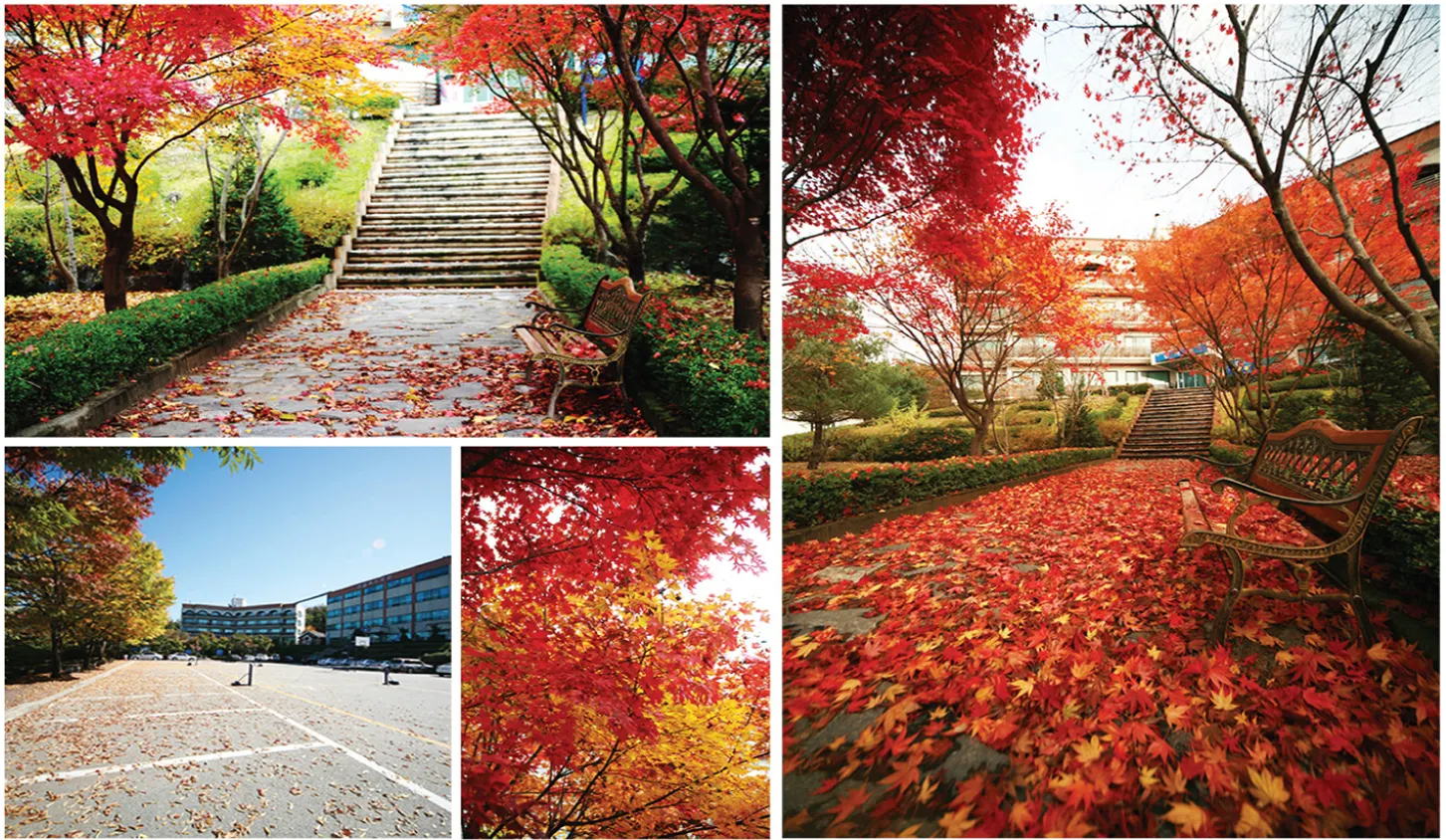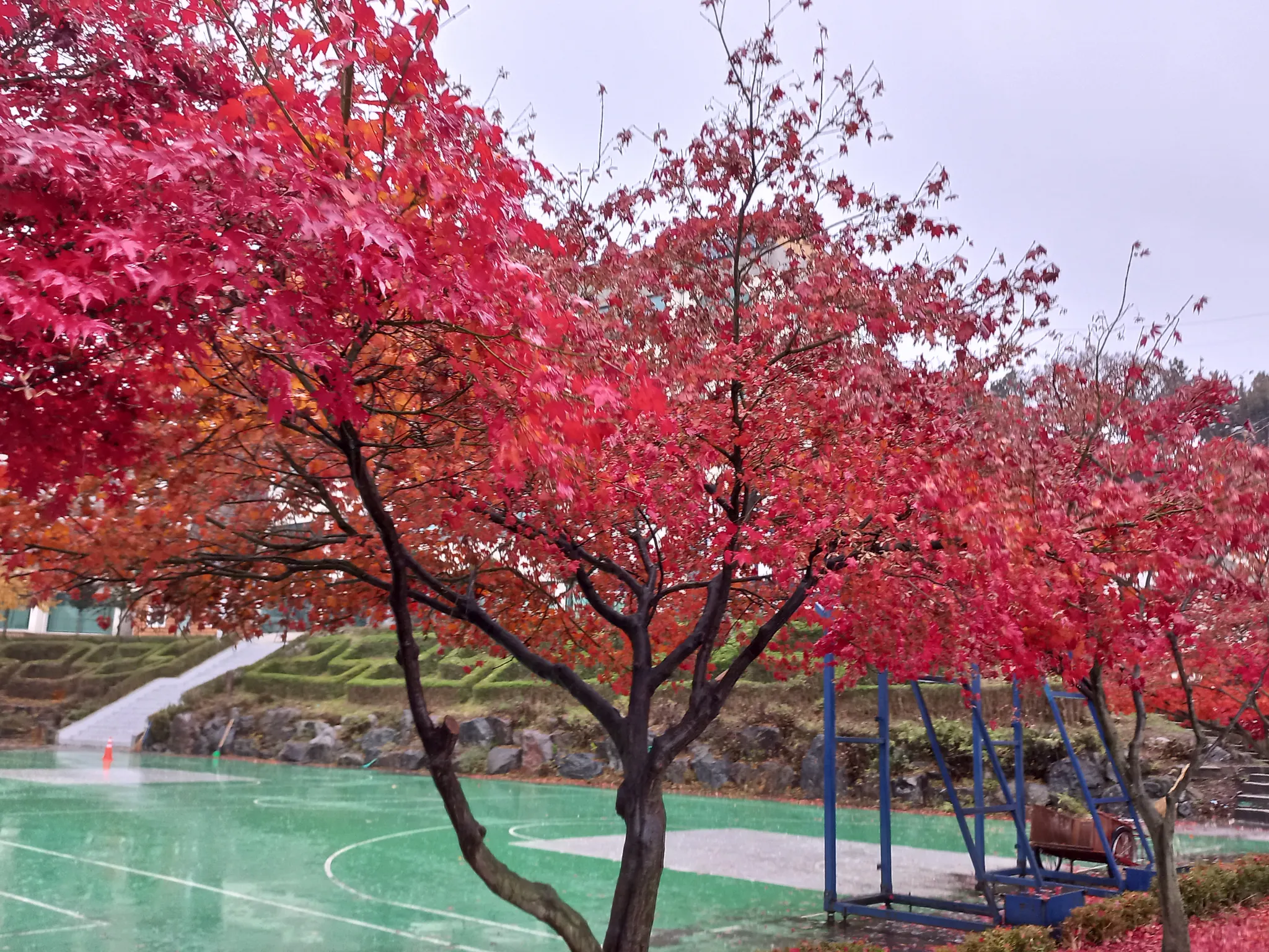 <정문에서 올라 오는 길의 가을 풍경과 운동장>