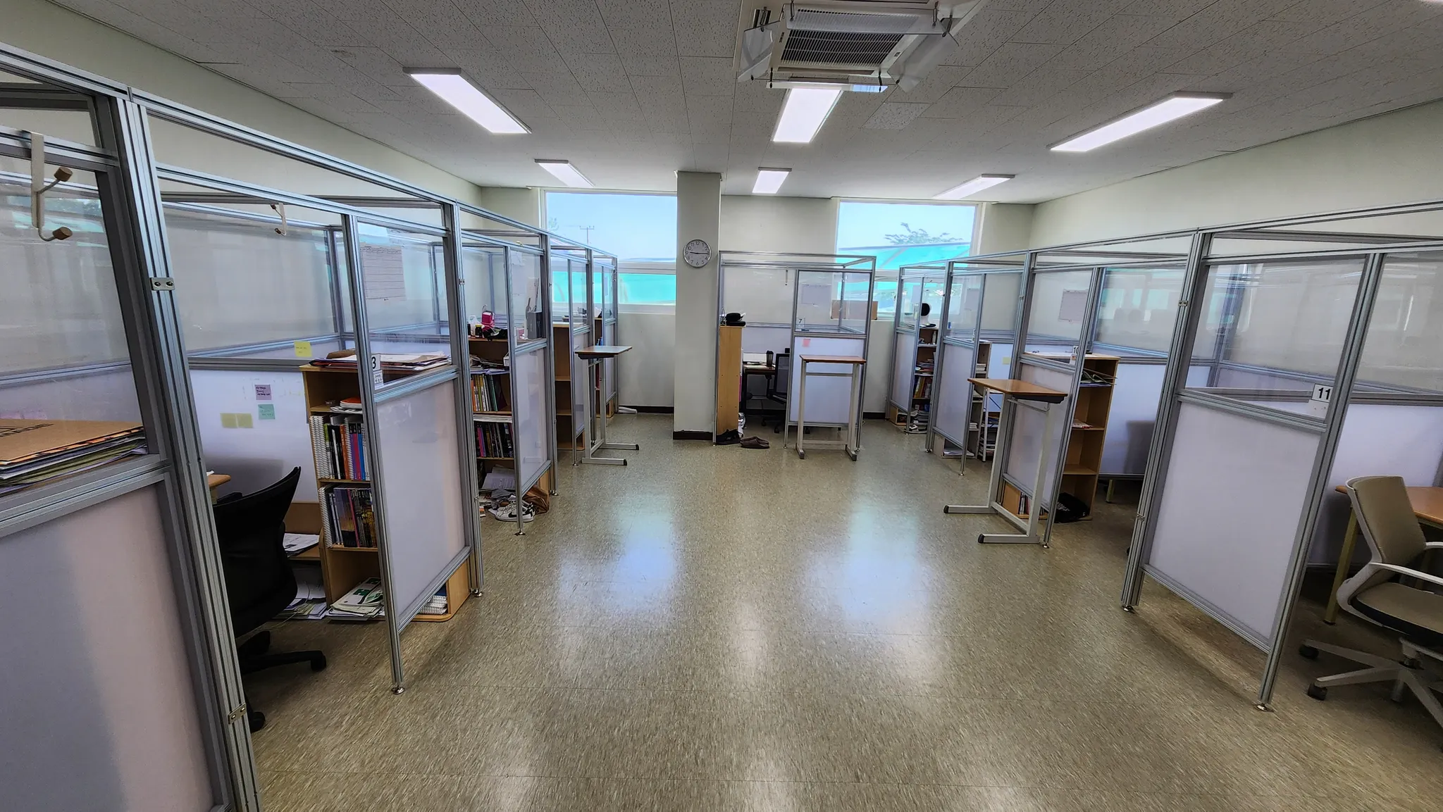 부스에서 공부하다 지루하면 옮겨서 공부할 수 있는 공용 오픈형 학습실>