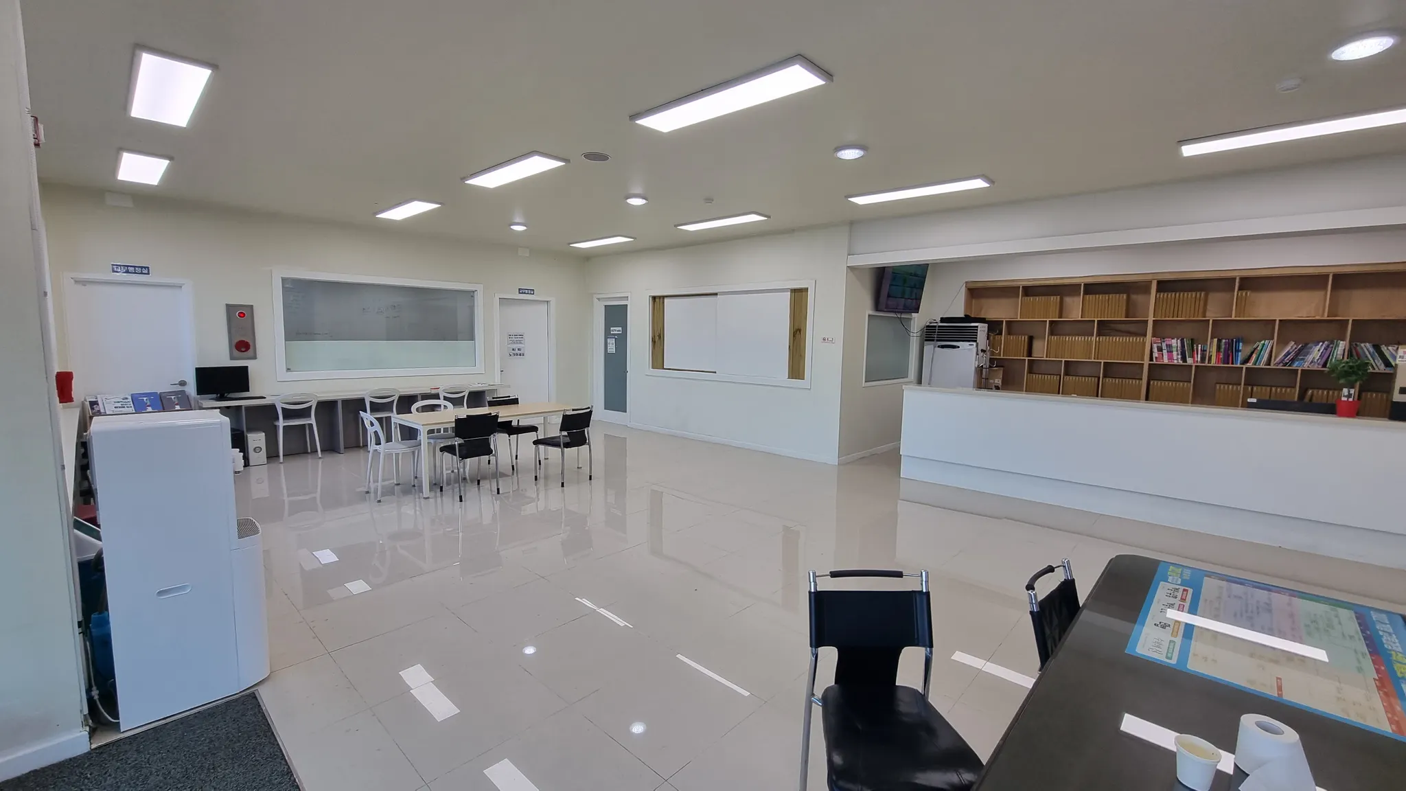 건물이 낡아서 최근에 많이 수리를 했으나 인테리어는 사진으로 보이는 것처럼 엄청난 돈을 투자한 후 학비로 월 400만원 가까이 받는 학원에 비하면 많이 부족합니다.
