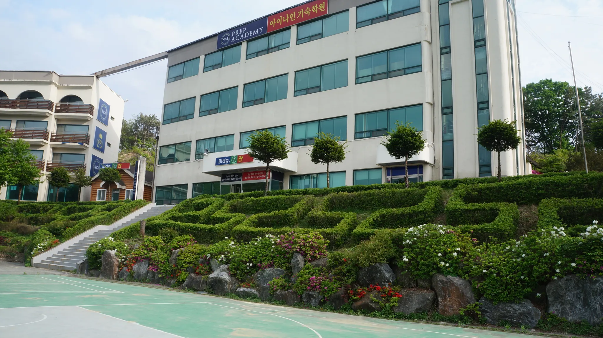 일반적인 중고등학교의 면적이 약 4천 평 전후입니다. 우리 학원은 대지만 6천 평인 공간에 큰 축구장과 농구장이 있습니다. 학생들이 스트레스를 줄일 수 있는 잔디 정원과, 벚꽃과 단풍이 예쁜 정원도 있습니다.