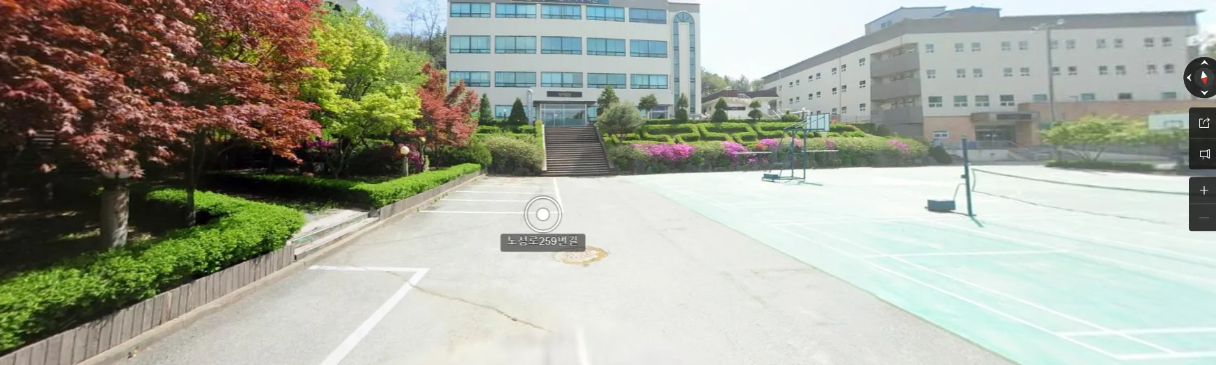 <좌측부터 7관(강의동), 8관(직원숙소), 9관(기숙사, 학습실), 10관(단층으로 된 식당)> 거리뷰로 보면 7관 좌측에 있는 또 하나의 큰 기숙사 건물을 보실 수 있습니다.