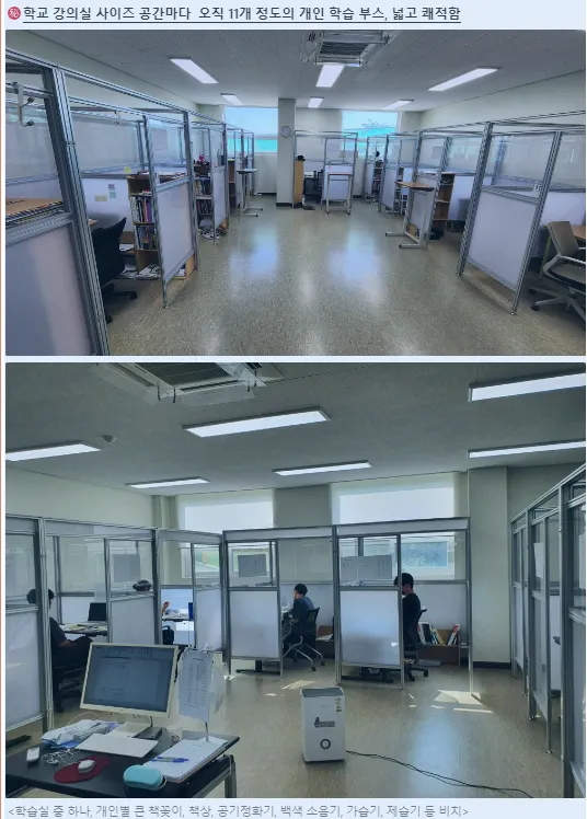 ”한 학습실에 11명 정도의 학생만 있어서 너무 쾌적하여 대만족입니다. 강추합니다.”