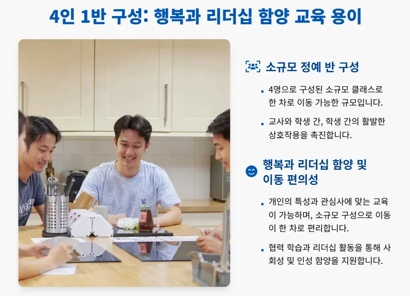 4인으로 1반 구성, 행복/리더 교육 이동 용이