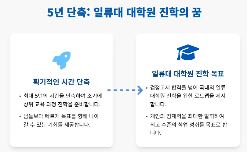 최연소 코스를 노리는 10대중고등학교를 모두 검정고시로 졸업하는 "검정고시 1년 + 독학사 1년" 코스를 밟으면 남들 중학교 3학년 나이일 때 이론적으로 대학원에 갈 수도 있다.