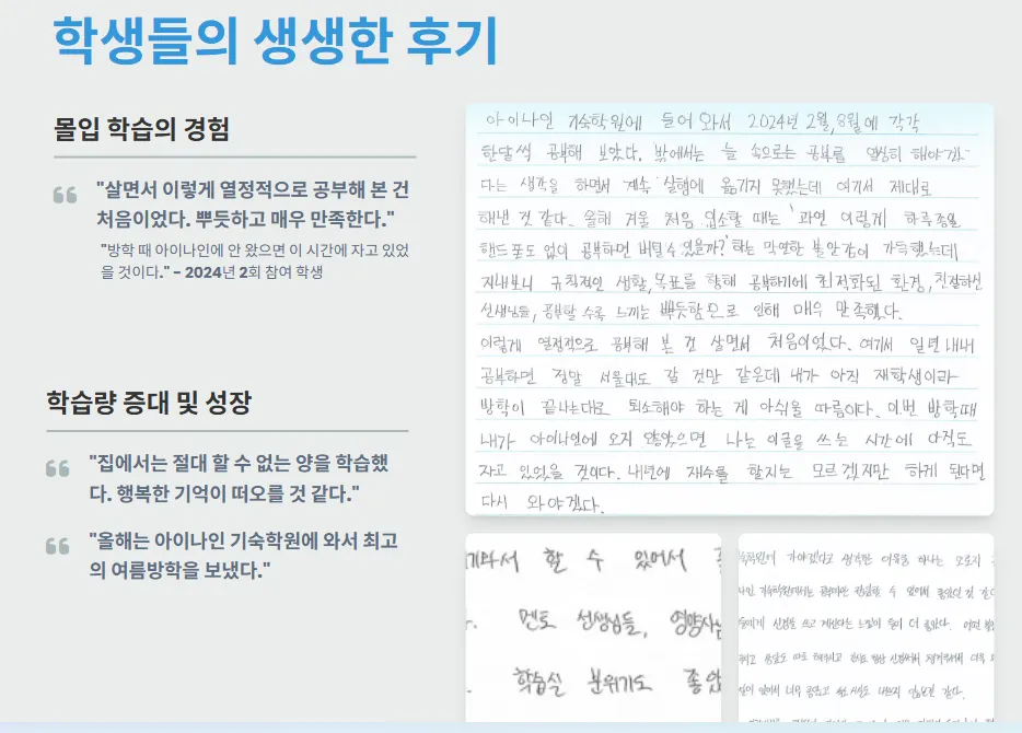 입학 자격 | 자격기준 | 자격 심사 있음 | 캠프 참여 여부 학부모와 상담 후 학원이 결정 |
