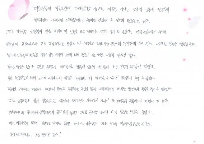비용 | 교재비, 앱 구입비 등은 직접 지출하게 안내 함. 개인 용돈외 추가 비용 없음. |