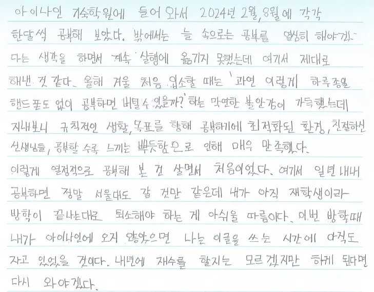 후딱 지나가는 방학, 기숙 학원에서 알차게 보내자.