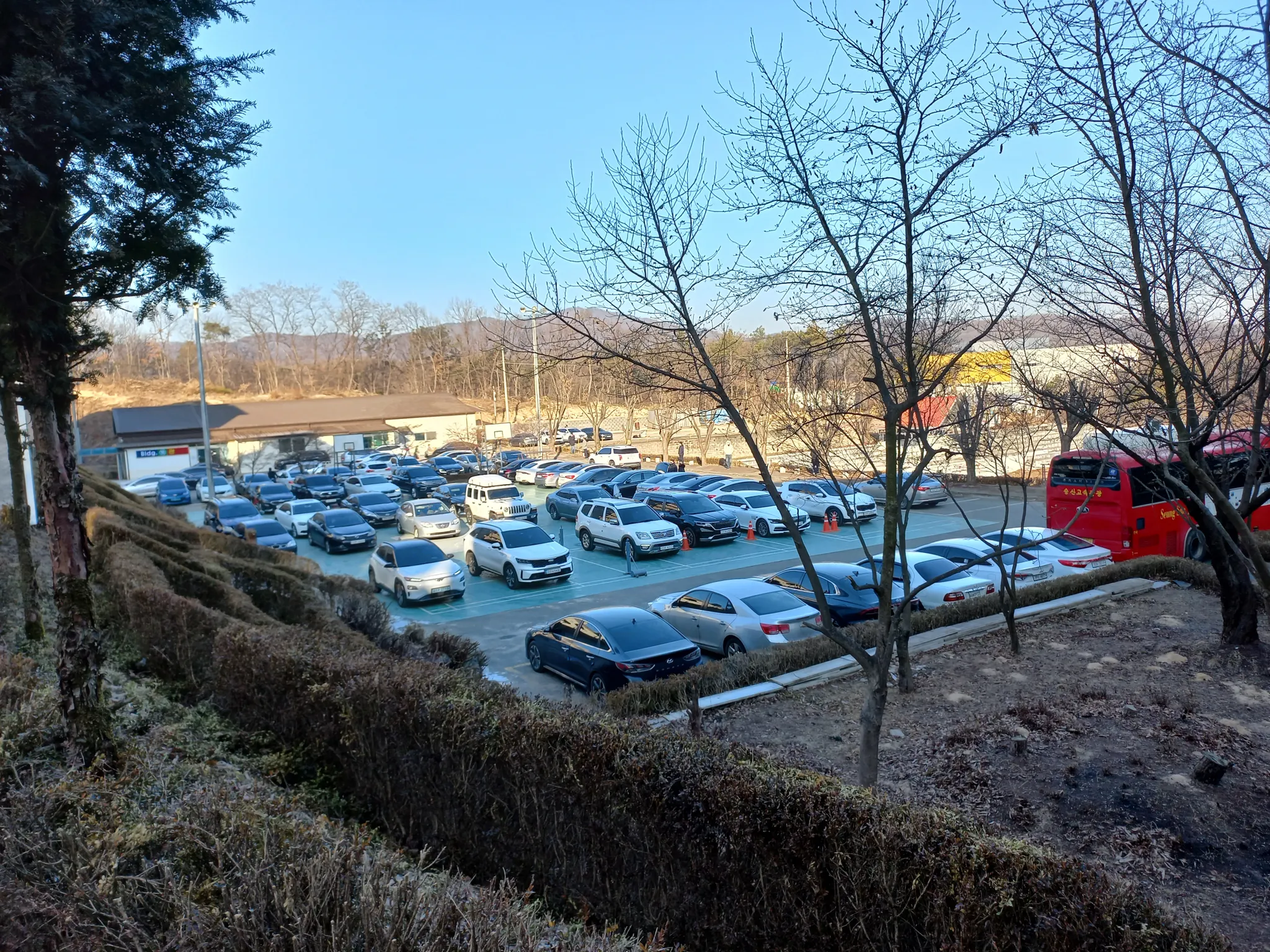 캠프 종강일, 학생 픽업용 학부모 차량들.