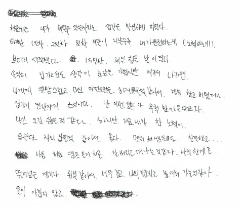 나에게 스스로 실망할까봐 버텼고 나의 한계를 뛰어넘은 계기가 되었고