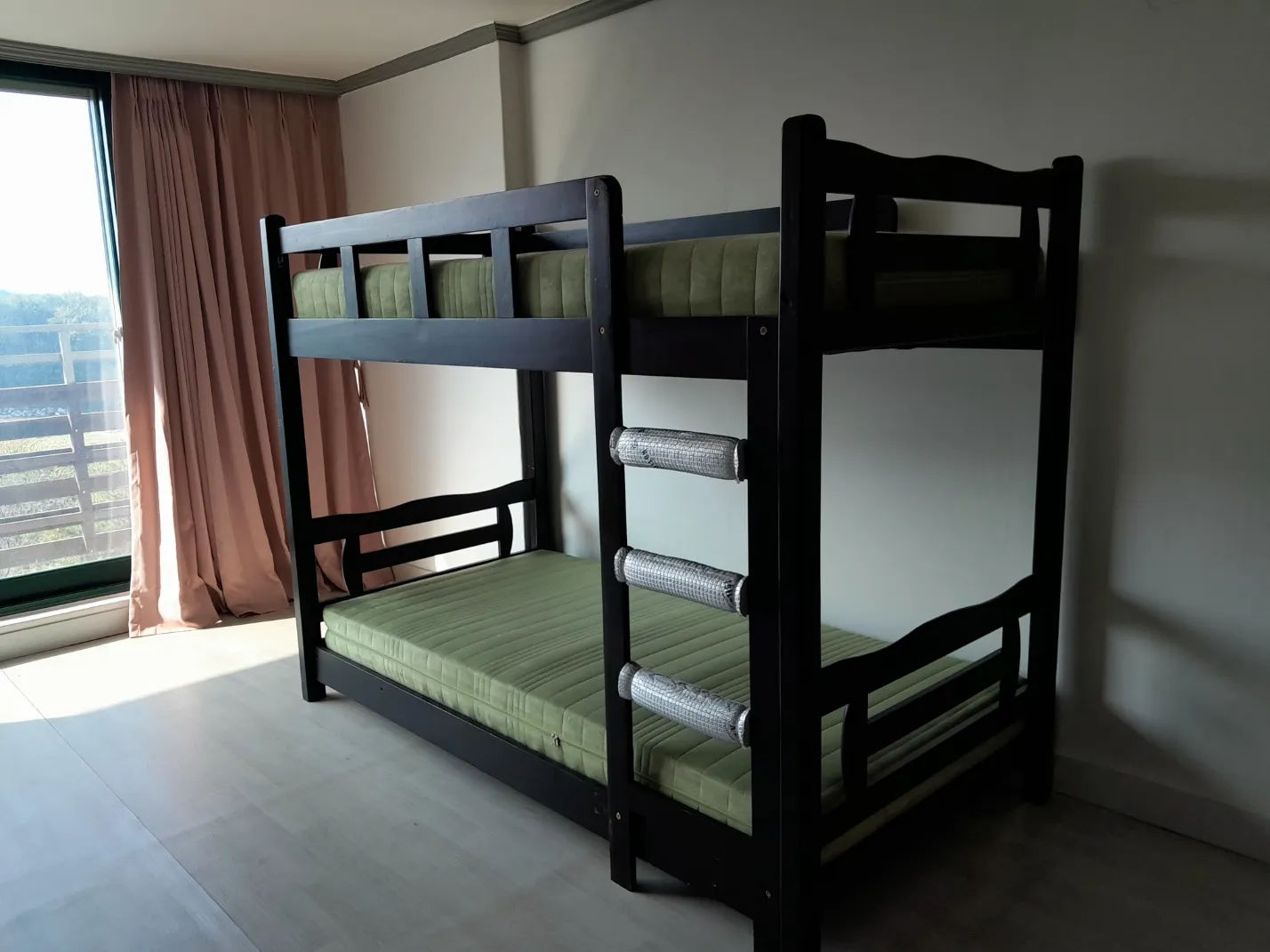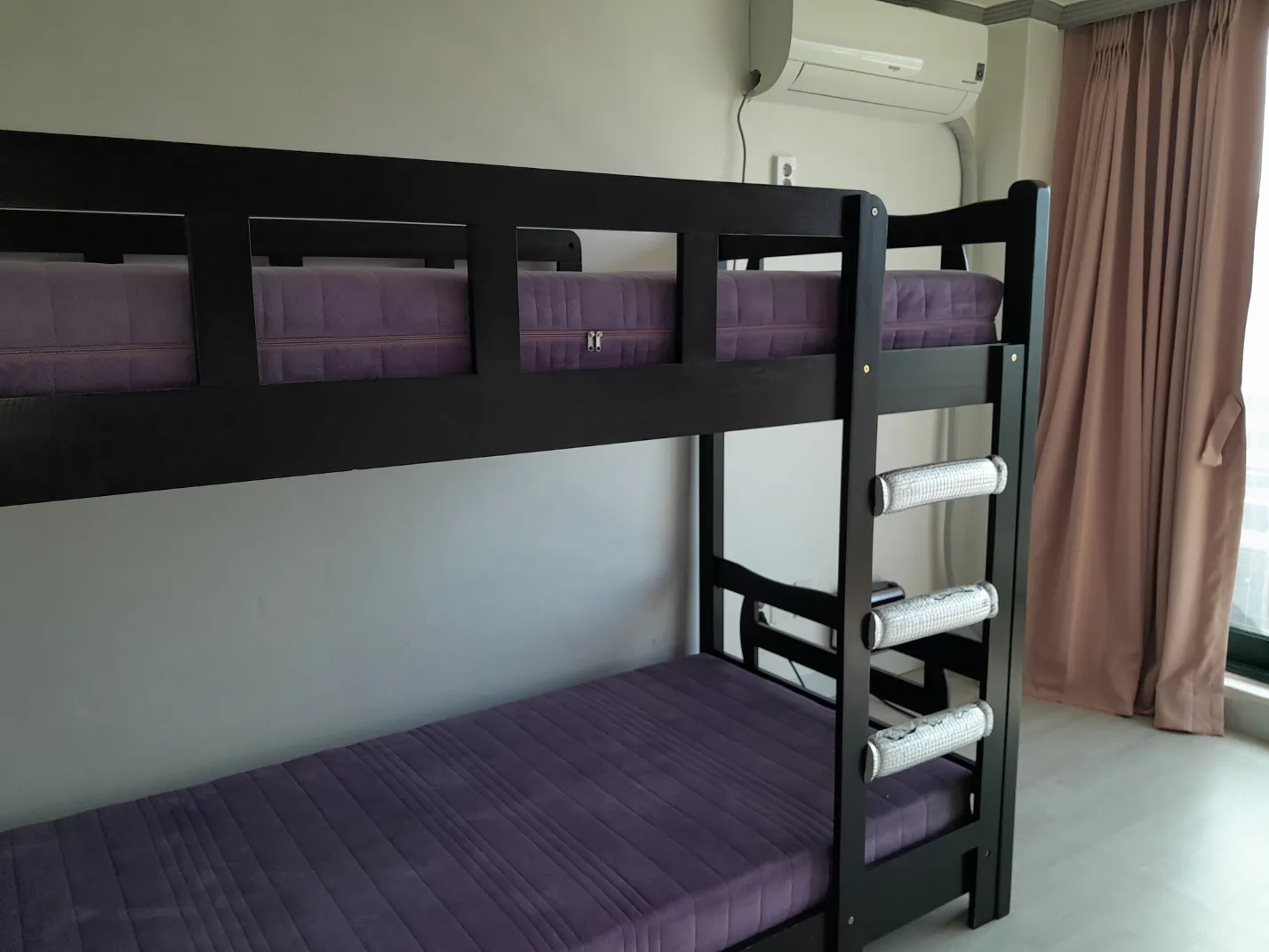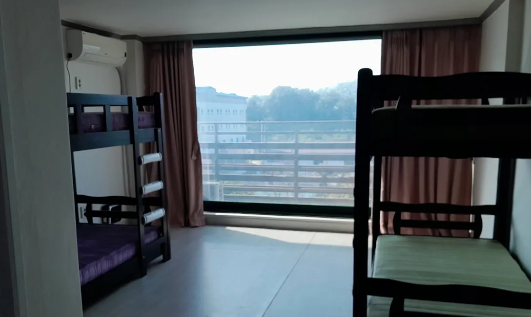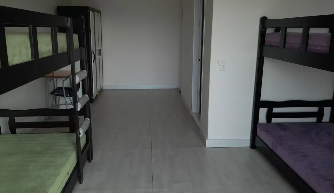 <4인실. 옷장 앞에 안 보이는 부분이 입구, 우측에 문 보이는 곳이 화장실/샤워실>