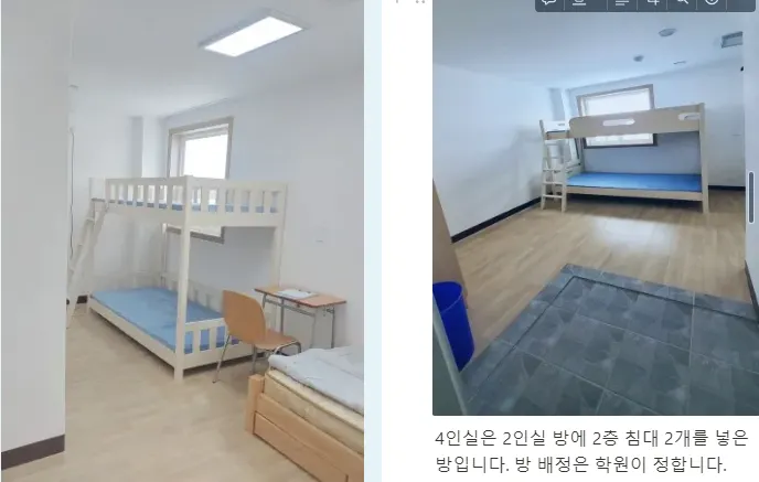 2명이 동반 입소하면 학년 관계 없이 2인 1실 제공
